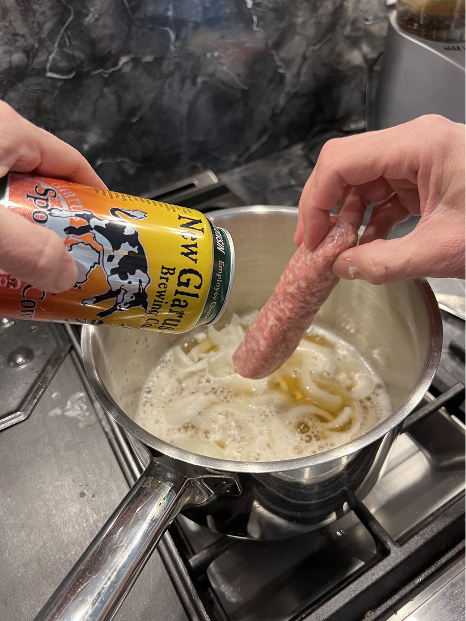 - Beer (Any beer will do, but better beer == better brats. In Wisconsin I usually reach for Spotted Cow)
